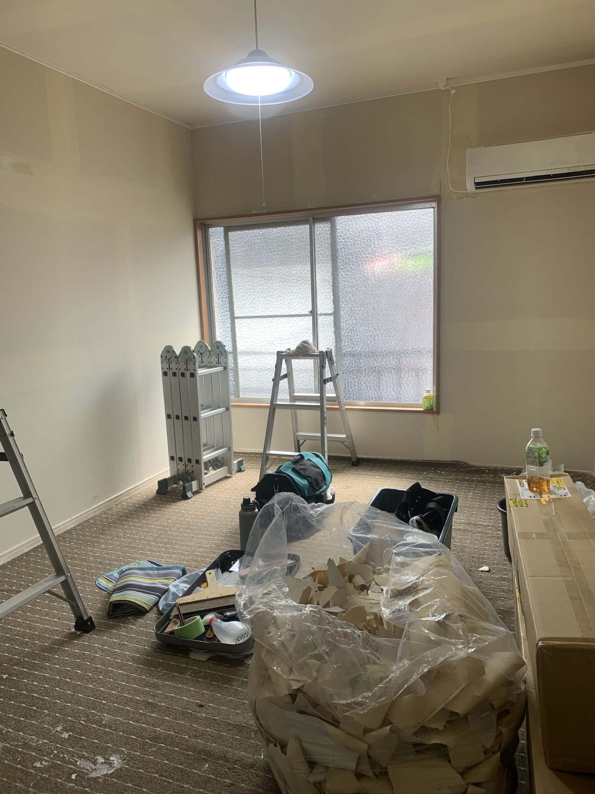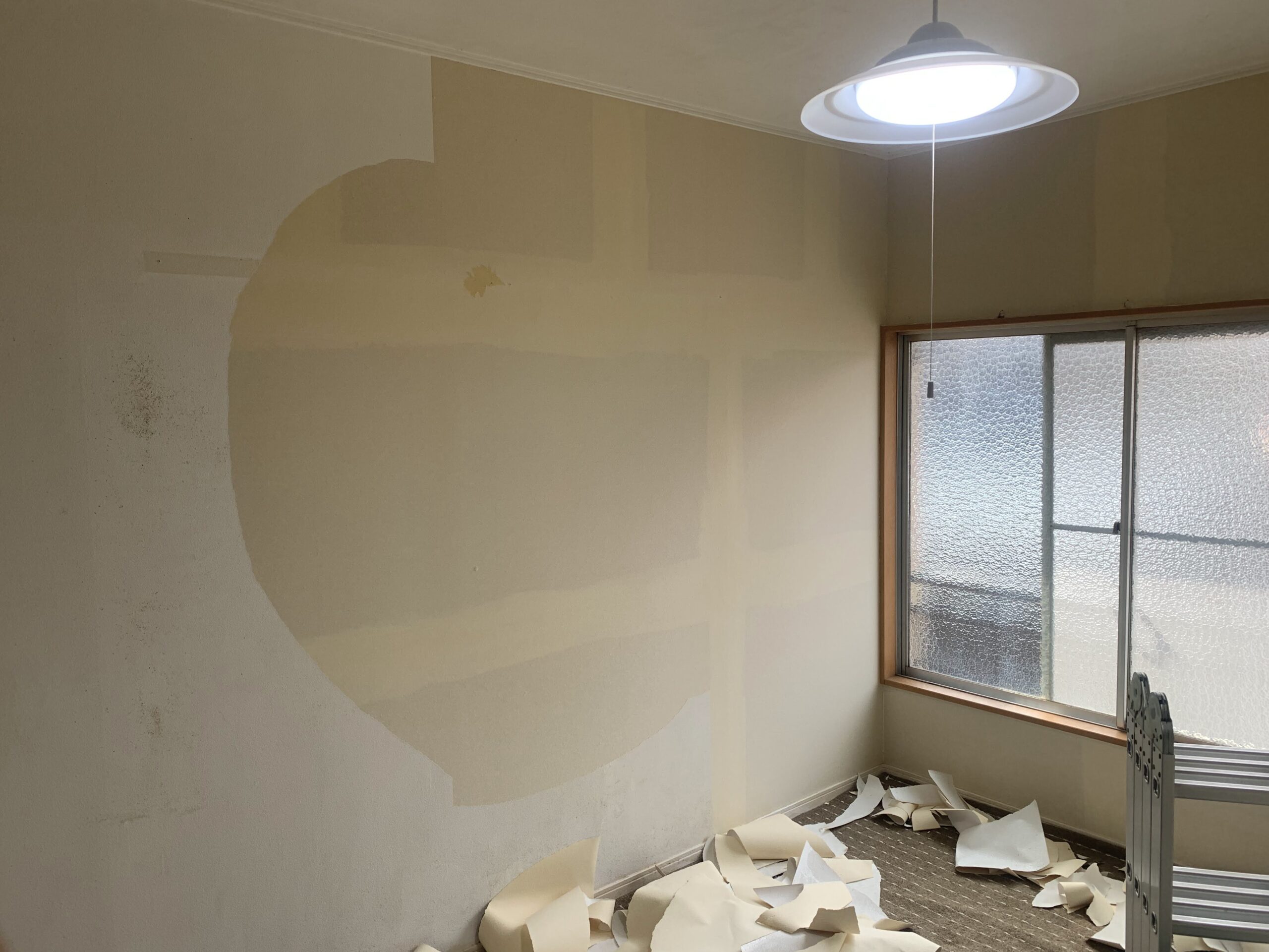 アパートのクロス貼り替えのご依頼を頂きました。 今回はクロスの上から塗装をしてしまった跡がある少し不安な案件・・。下地を出すのに手間が掛かりそう。。という訳で、写真にある家工房相模原矢部店の大沢さんに応援を要請!とても丁寧な仕事をされる方なので、良くお手伝い頂きます♪