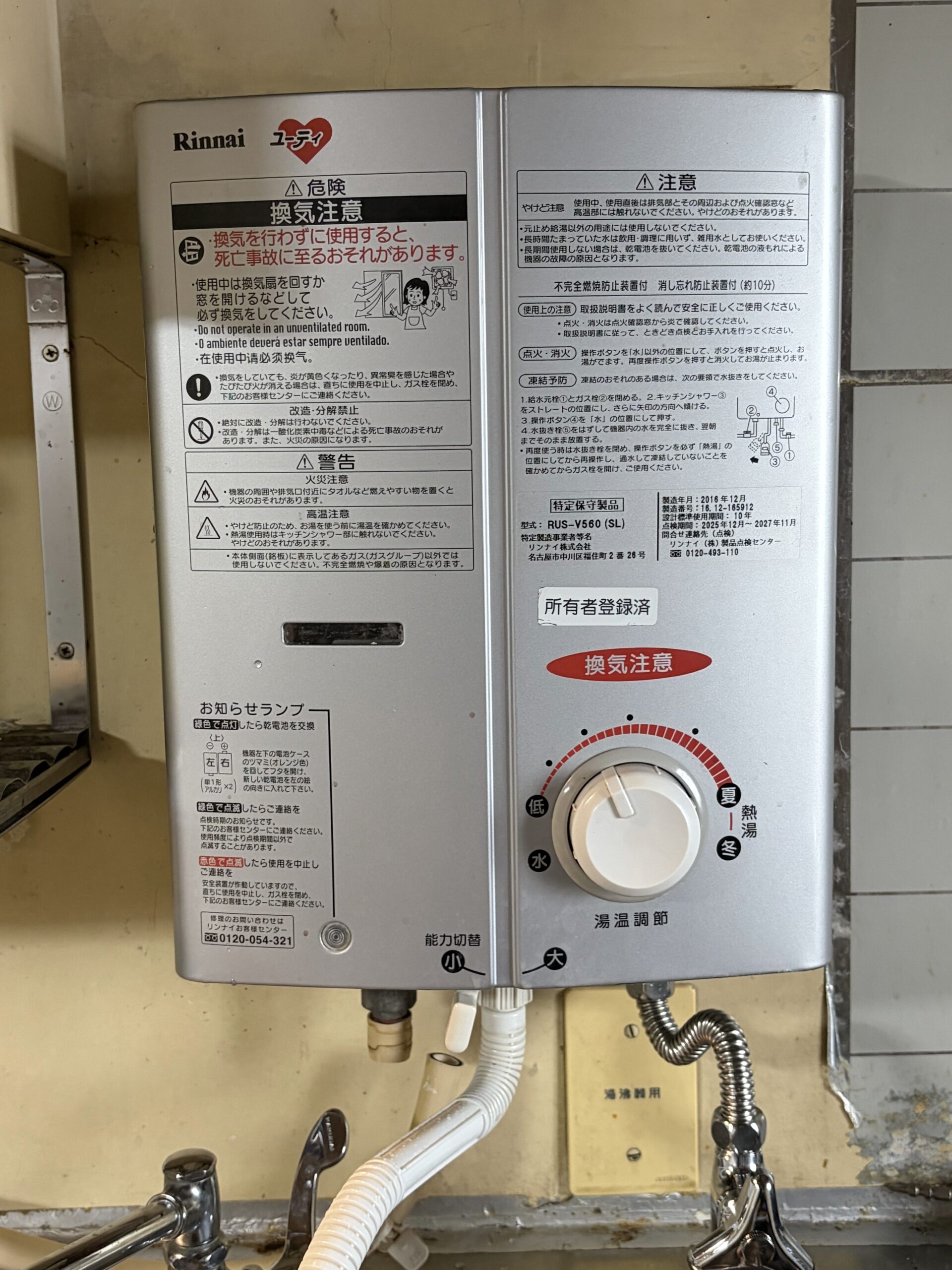 小型給湯器の交換 2025/12月(小金井市)