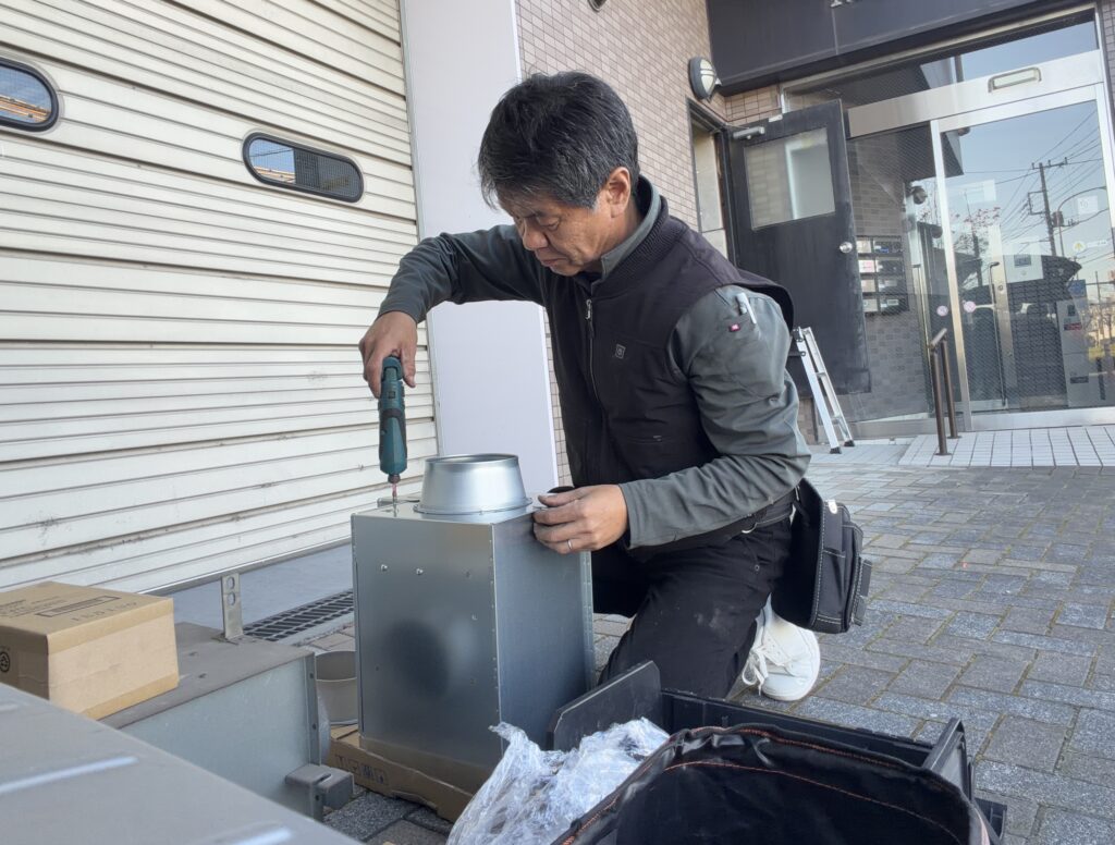 温度スイッチ空調ファンの交換 2025/11月(府中市) 2025.12.18 ビルのエレベータ室にある、自動温度スイッチ付き排熱空調ファンの交換工事依頼を頂きました。 今回は同メーカー後継機へ交換。家庭用以外でも業務用機種の交換工事可能なので、ご相談ください!