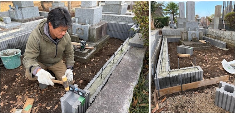 毎年お墓の草むしりと掃除を頼まれていたお客様より、老朽化してしまったブロック囲いのリフォームのご依頼を頂きました!