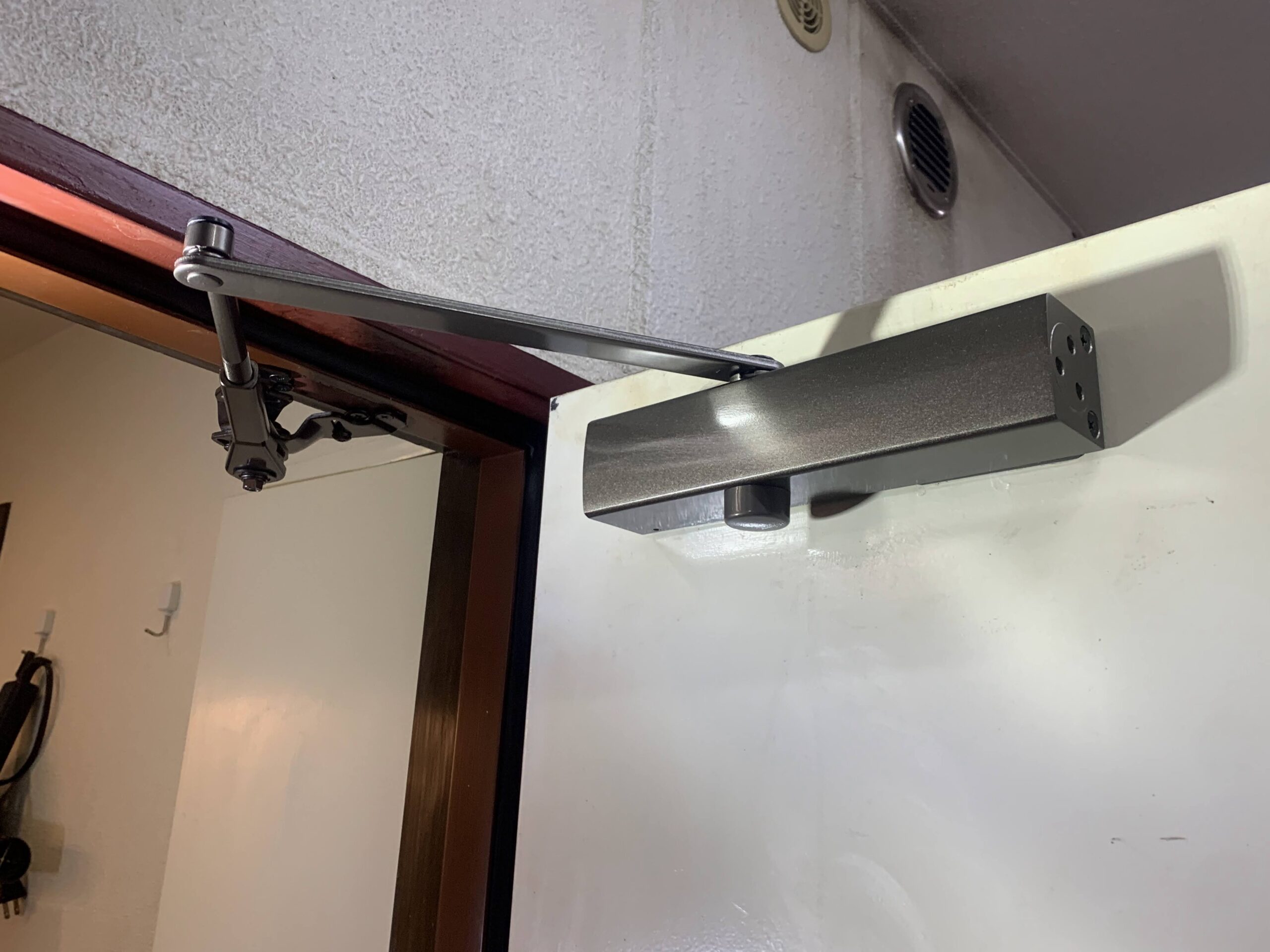 玄関扉が勢いよくバタン!と閉まってしまうので診てほしいとのご依頼を頂きました。 殆どの場合、ドアクローザーの寿命が原因です。調整のみで直る場合もありますが、大抵の場合はドアクローザー本体から油圧用の油が漏れています。これ […]